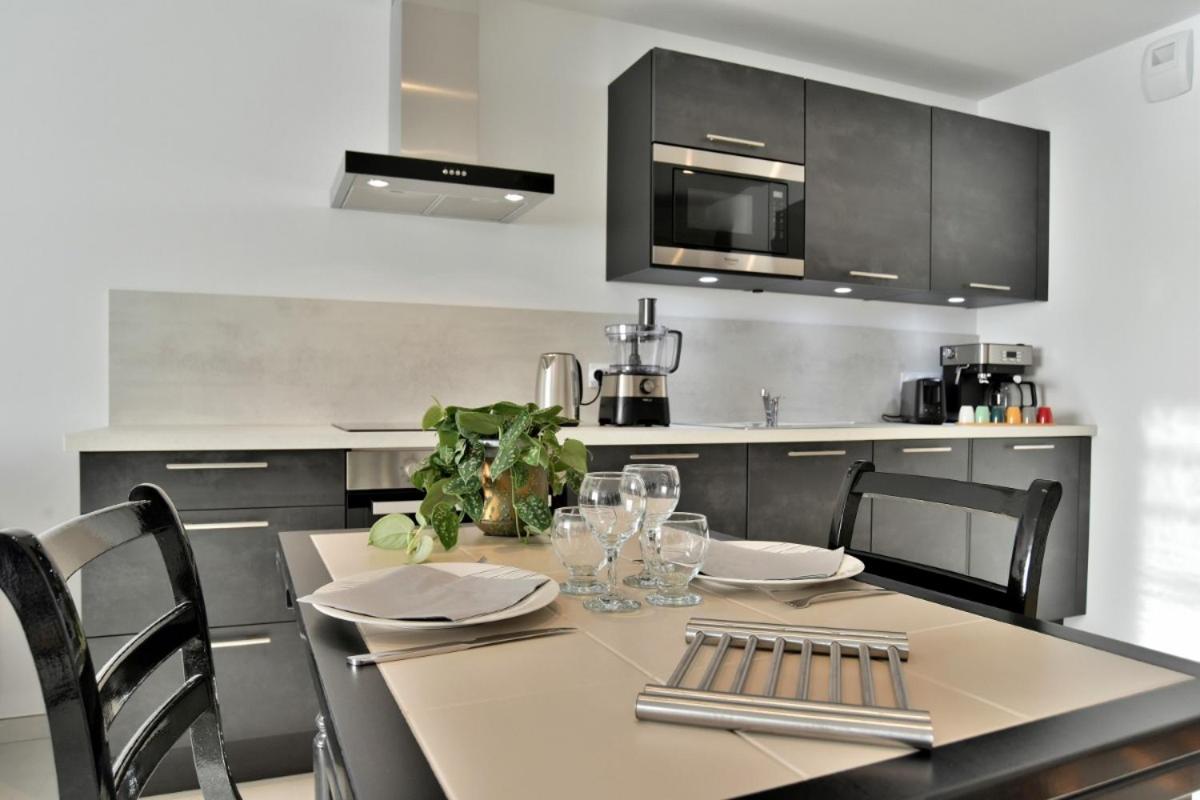 One-Bedroom Apartment. This apartment consists of 1 living room, 1 separate bedroom and 1 bathroom with a hairdryer. Guests can make meals in the kitchen that is equipped with a refrigerator, a dishwasher, an oven and a microwave. The apartment provides a washing machine, a tea and coffee maker, a high chair for children, a TV, as well as sea views. The unit offers 2 beds.