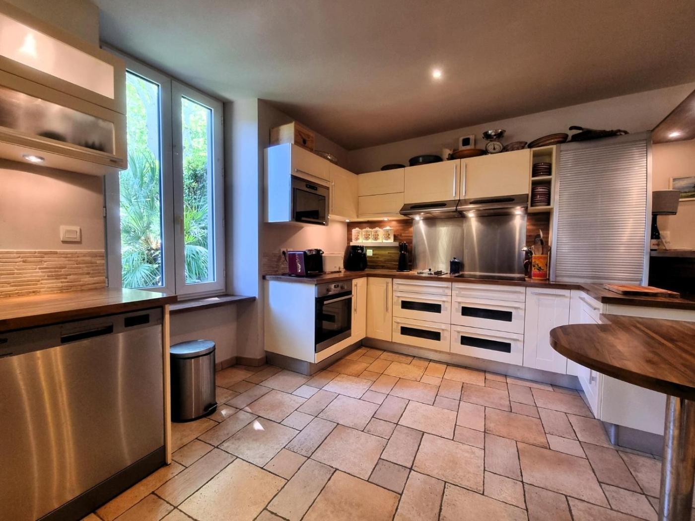 The spacious holiday home has 5 bedrooms, a TV, a fully equipped kitchen with a dishwasher and an oven, a washing machine, and 4 bathrooms with a bidet.