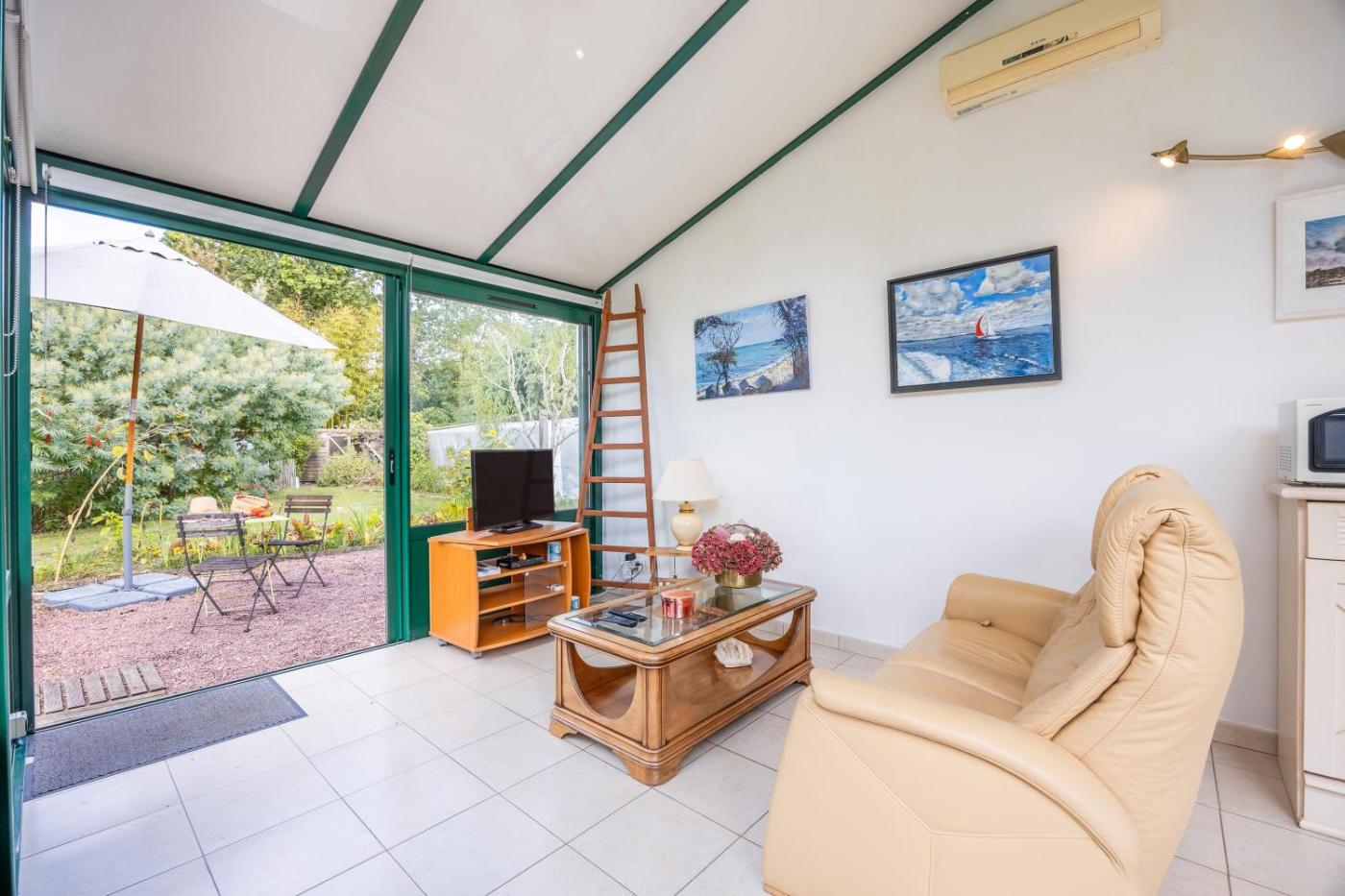 The holiday home features 1 bedroom, 1 bathroom, bed linen, towels, a TV with satellite channels, a fully equipped kitchen, and a terrace with garden views. For added privacy, the accommodation features a private entrance.
