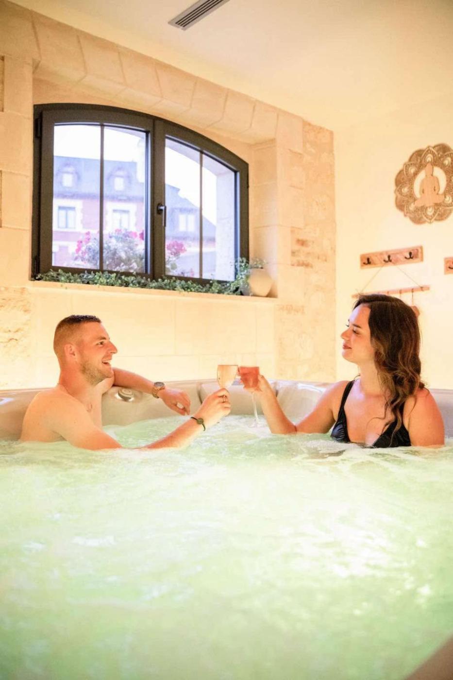 Double Room with Spa Bath. This luxurious double room provides a private pool, a hot tub and a sauna. The spacious double room features a tea and coffee maker, a dining area, as well as a private bathroom boasting a walk-in shower and a bath. The double room features a flat-screen TV, a wardrobe, parquet floors, as well as heating. The unit has 1 bed. ;