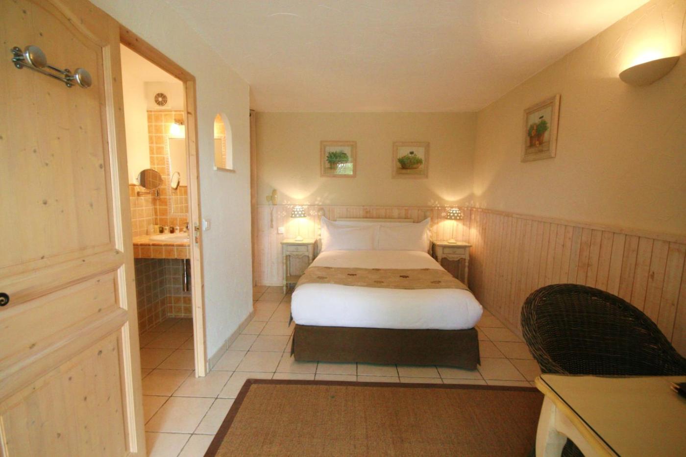 Standard Single Room with Terrace. Room with double bed and view to the medieval city of St Paul de Vence.