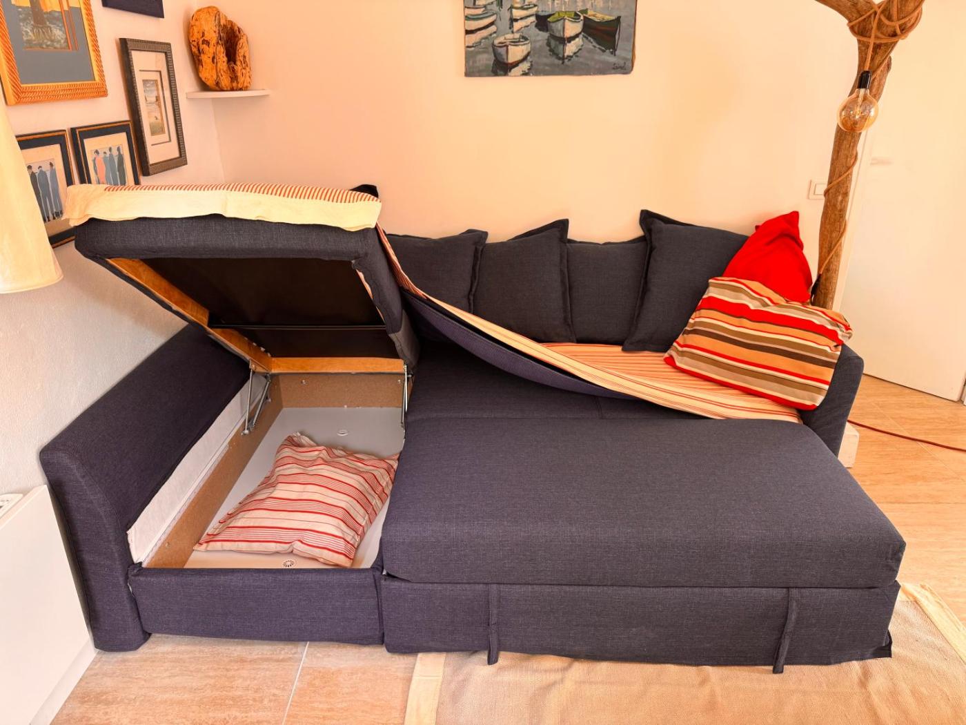 One-Bedroom House. Featuring a private entrance, this holiday home is comprised of 1 living room, 1 separate bedroom and 1 bathroom with a shower and a hairdryer. The well-fitted kitchen features a stovetop, a refrigerator, a dishwasher and a microwave. The holiday home offers a washing machine, soundproof walls, a tea and coffee maker, a flat-screen TV, as well as garden views. The unit offers 2 beds.