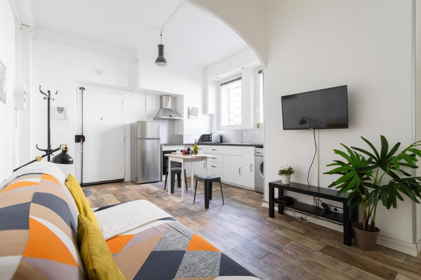 Studio Apartment. Boasting a private entrance, this apartment includes 1 living room, 1 separate bedroom and 1 bathroom with a shower and a bidet. Meals can be prepared in the kitchen, which has a stovetop, a refrigerator, kitchenware and an oven. This apartment has a washing machine, a coffee machine, a flat-screen TV with satellite channels and a balcony. The unit has 2 beds.