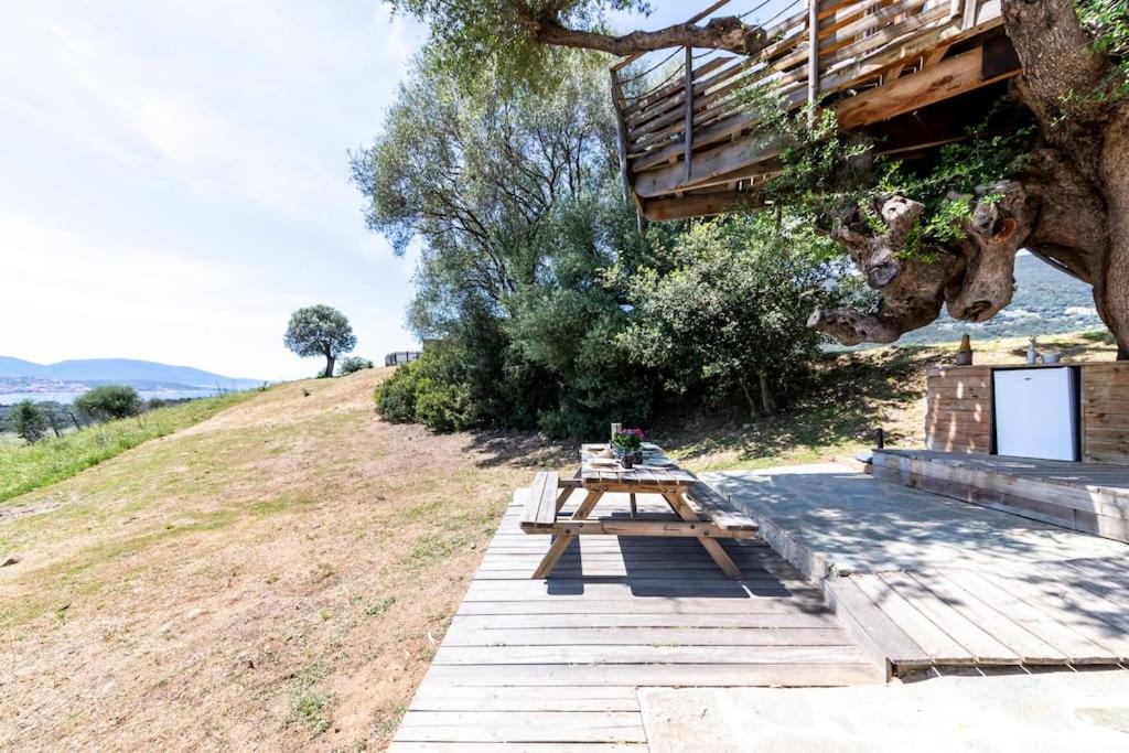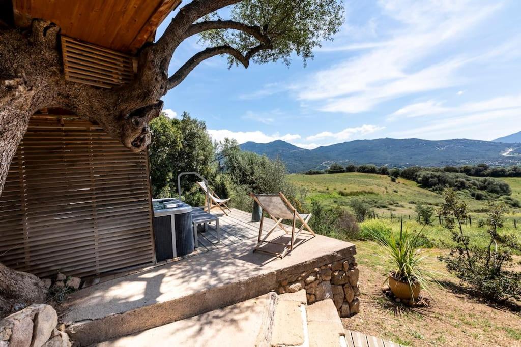 Situated 37 km from Archaeological site of Cucuruzzu and Capula, Cabane Dans les Arbres, Domaine de l Ogliastru features accommodation in Olmeto with access to a hot tub. The property features mountain and garden views, and is 8.5 km from Propriano Port.