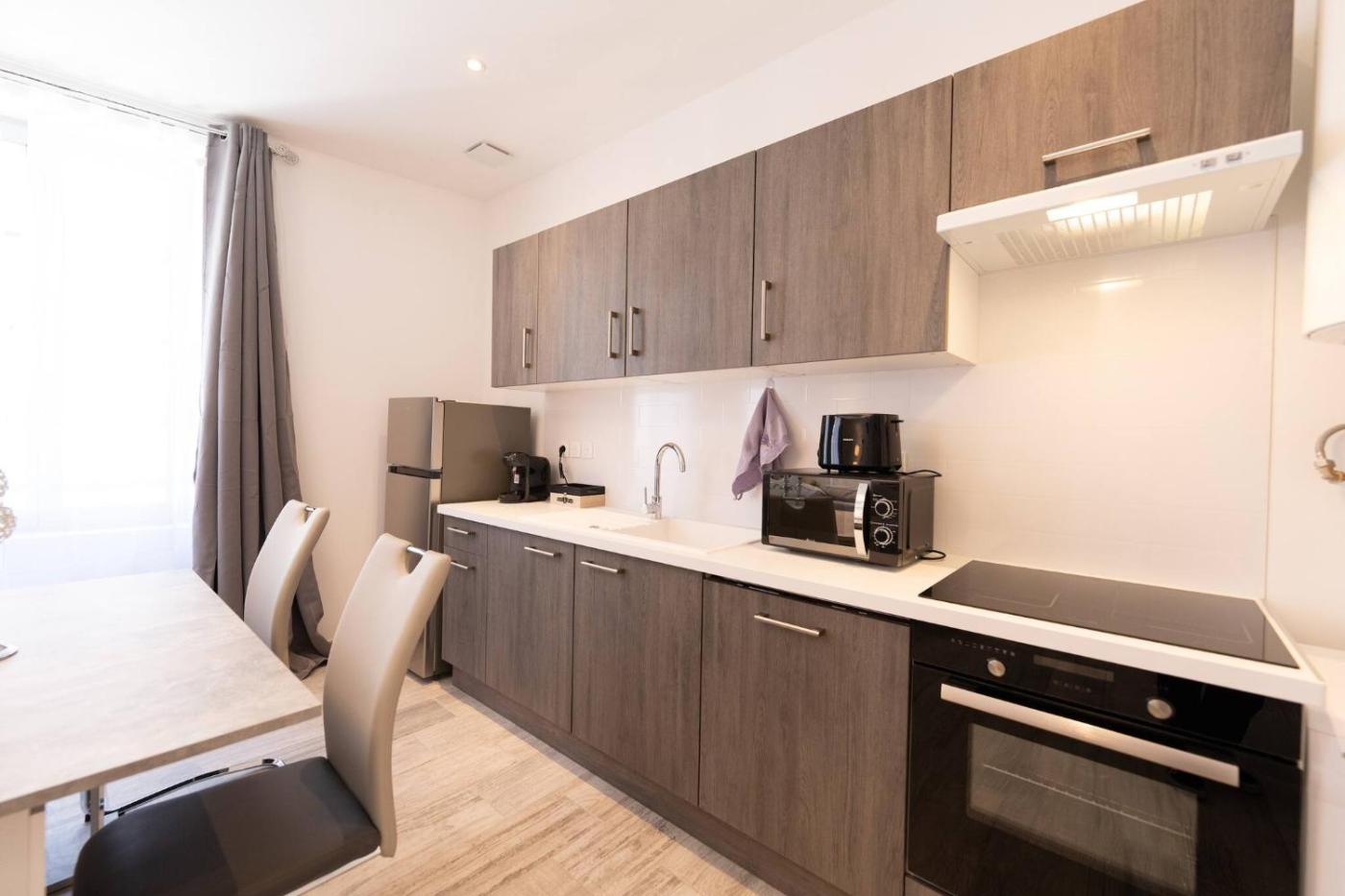 One-Bedroom Apartment. This air-conditioned apartment comes with 1 living room, 1 separate bedroom and 1 bathroom with a shower. The well-equipped kitchen has a refrigerator, a dishwasher, kitchenware and an oven. The apartment features a washing machine, a tea and coffee maker, a wardrobe, heating, as well as a TV. The unit has 2 beds.