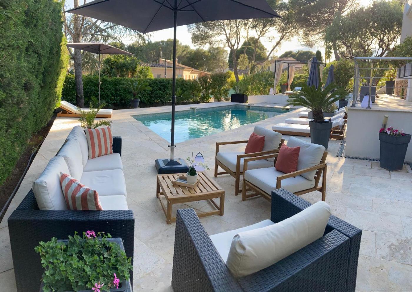 The villa with a terrace and garden views features 2 bedrooms, a living room, a flat-screen TV, an equipped kitchen with a dishwasher and an oven, and 1 bathroom with a walk-in shower. Featuring air conditioning, this unit has a dressing room and a fireplace. For added privacy, the accommodation has a private entrance and soundproofing.
