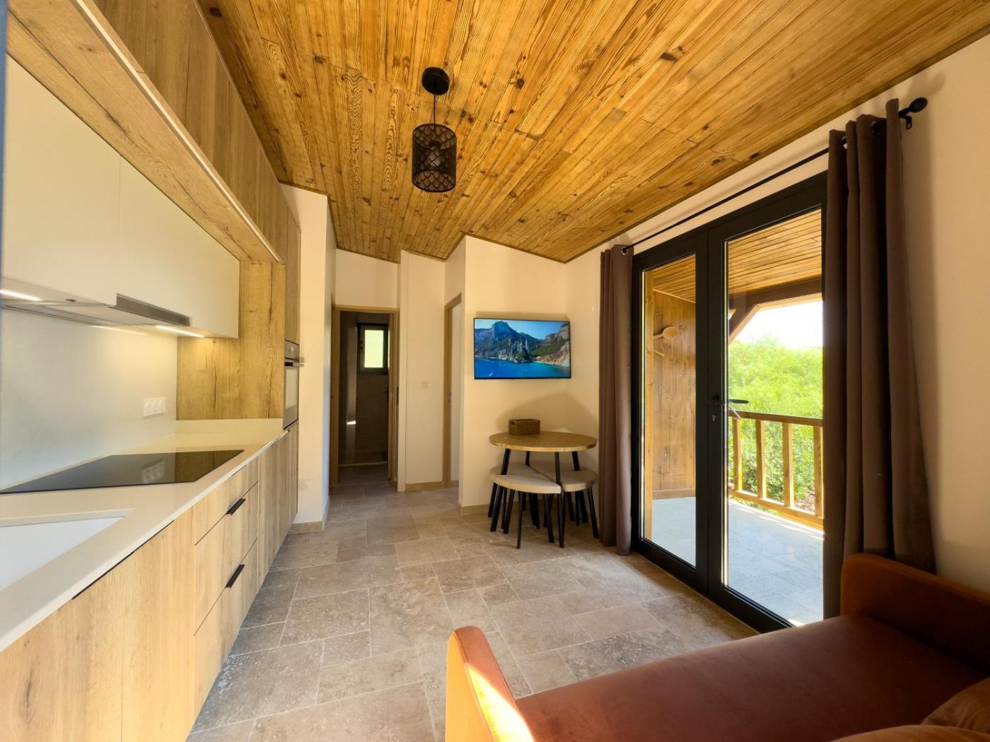 One-Bedroom Chalet. Guests will find a stovetop, a refrigerator, a dishwasher and kitchenware in the well-fitted kitchen. The chalet also provides guests with a barbecue. Featuring a terrace with garden views, this chalet also provides a washing machine and a flat-screen TV with streaming services. The unit offers 2 beds.