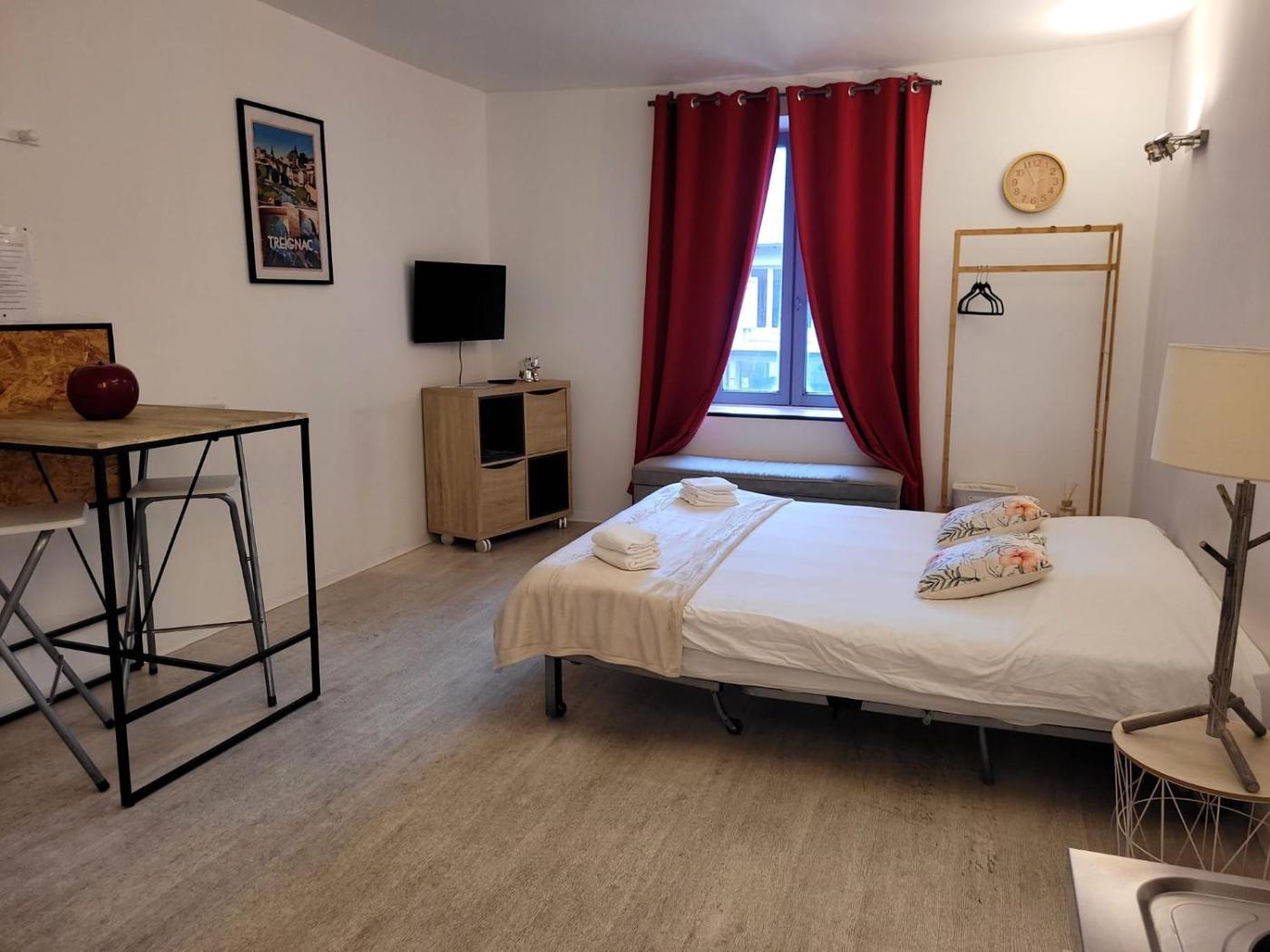 Studio Apartment. This first-floor studio is composed of a modern kitchen opened onto a bright living room equipped with a sofa bed. There is a bathroom equipped with a balneo bathtub and a balcony overlooking The Vézère. An extra bed is available on request. ;