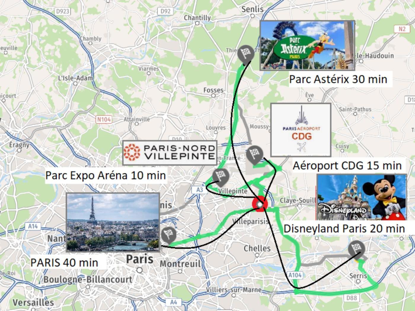Val dEurope RER Station is 22 km from Gîte Unique Le Caijonet proche de Disneyland, Aeroport CDG, Paris, while Stade de France is 22 km away. Paris - Charles de Gaulle Airport is 7 km from the property.