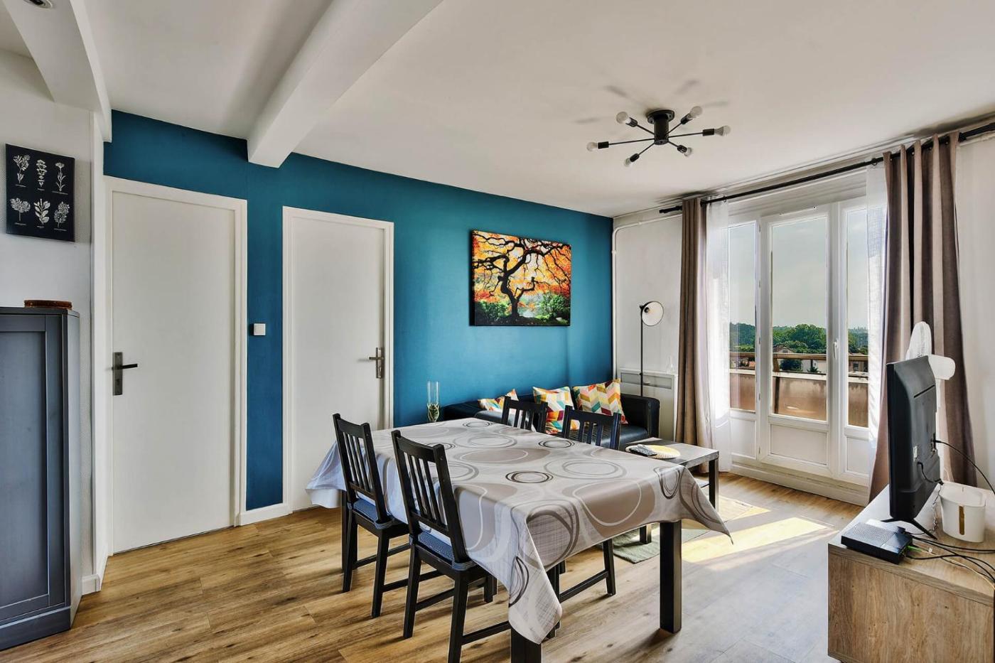 Offering quiet street views, Appart le Jules Guesde 3ch Traversant, Métro D Parilly, place de parking is an accommodation located in Vénissieux, 8.3 km from Musée Miniature et Cinéma and 8.8 km from Museum of Fine Arts of Lyon. The property features city andcourtyard views, and is 7.8 km from Part-Dieu Train Station. The apartment also provides free WiFi, free private parking and facilities for disabled guests.